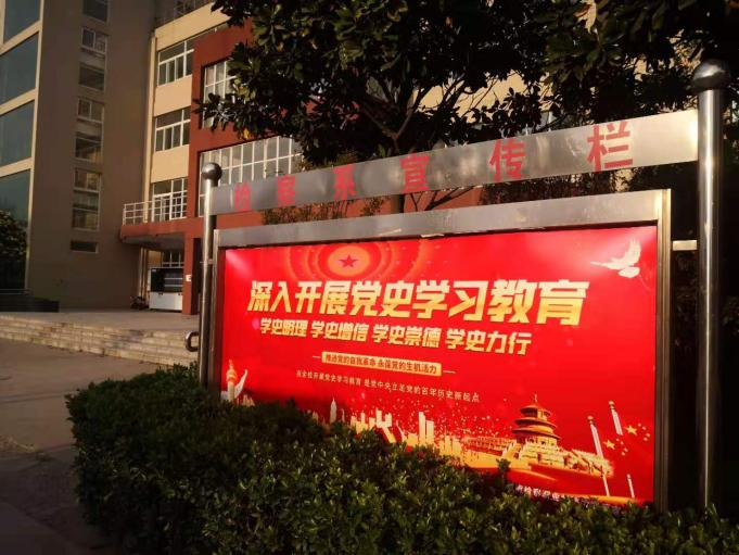 走进二号教学楼,让人眼前一亮的是墙上的电子屏,党的百年发展历程以视频图文的形式滚动播放。楼外宣传栏、条幅、大厅展板架、走廊,以各类形式、载体全景展现党的百年壮阔史诗,楼内楼外营造出了浓郁的学习氛围。联合教工党支部观看了红色电影《血战湘江》,组织各班观看了《上甘岭》,了解革命先烈的英勇事迹,传承红色基因,赓续精神血脉。