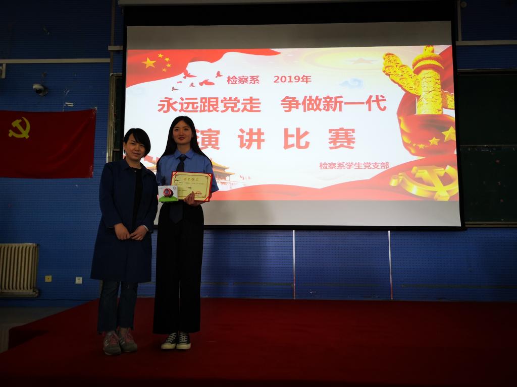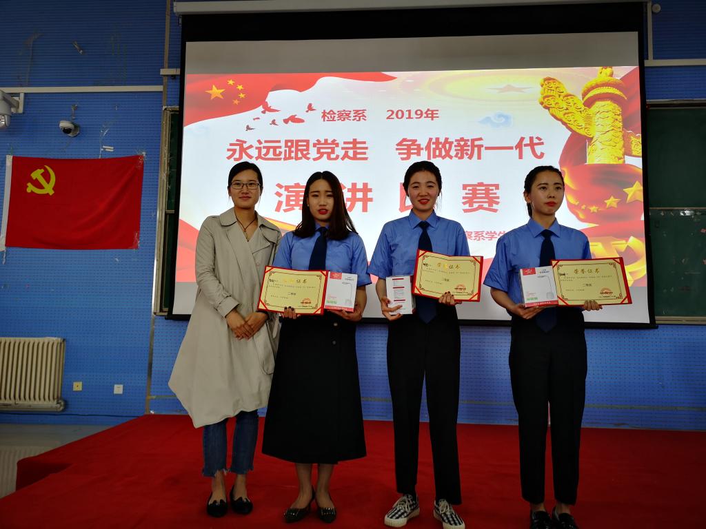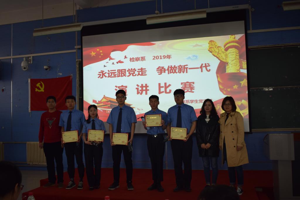 深入学习贯彻习近平新时代中国特色社会主义思想和党的十九大精神,提高学生思想政治觉悟,4月26日,检察系学生党支部在2301教室举办“永远跟党走,争做新一代”主题演讲比赛决赛。检察系教务科科长时瑞燕、学生管理科科长张燕乐、全体辅导员以及2018级全体学生到场观看比赛。