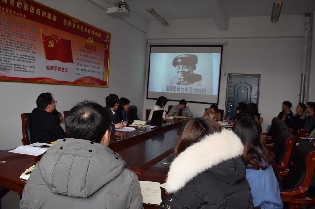 为引导师生党员学习、践行雷锋精神,树立正确的人生观、世界观和价值观,3月4日,检察系在图书馆2309会议室开展“学习雷锋精神,争做合格党员”主题党日活动。检察系教职工党支部全体党员、学生党支部委员参加会议。系党总支书记郑志锋主持会议。