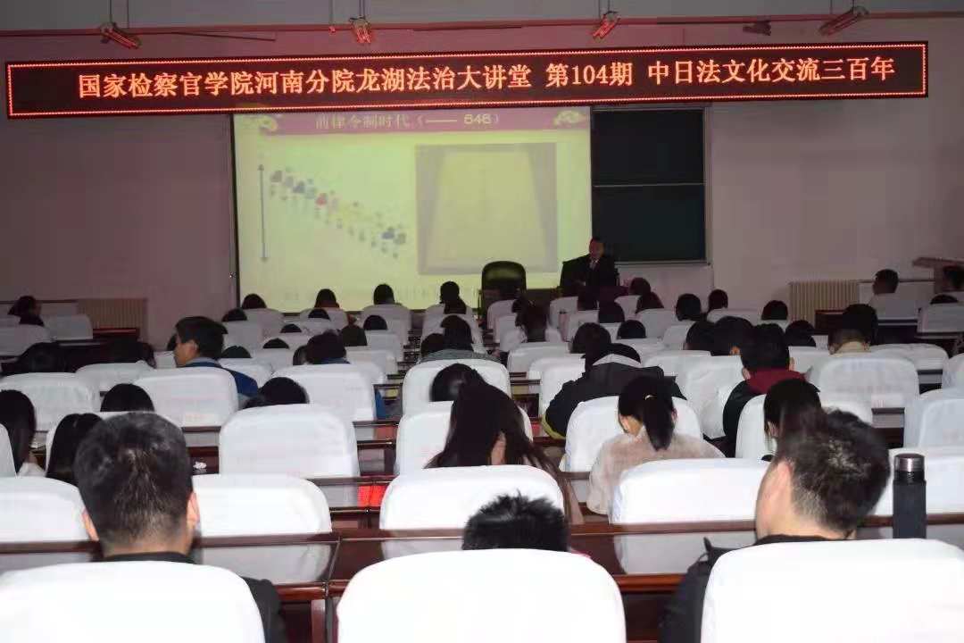 为使学生深入了解中日法文化的发展变迁过程,11月6日下午,检察系特邀中国政法大学法律史研究院副教授、法学博士陈煜老师到williamhill龙湖法治大讲堂讲授《中日法文化交流三百年》。检察系2018级本科以及速录、信息化班全体学生到场聆听。检察系主任郑志锋主持。