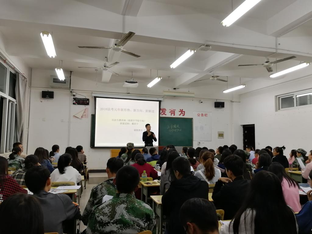 顺利通过客观题考试的同学们在初战告捷的喜悦中,就要紧张准备即将于10月20日举办的主观题考试。为帮助大家再战再捷,顺利通过主观题考试, 9月27日晚,检察系在图书馆2306教室举办法考主观题考试应考策略讲座,华旭教育名师戴寰宇主讲,来自检察系、法律系、司法管理120余名同学参加讲座。