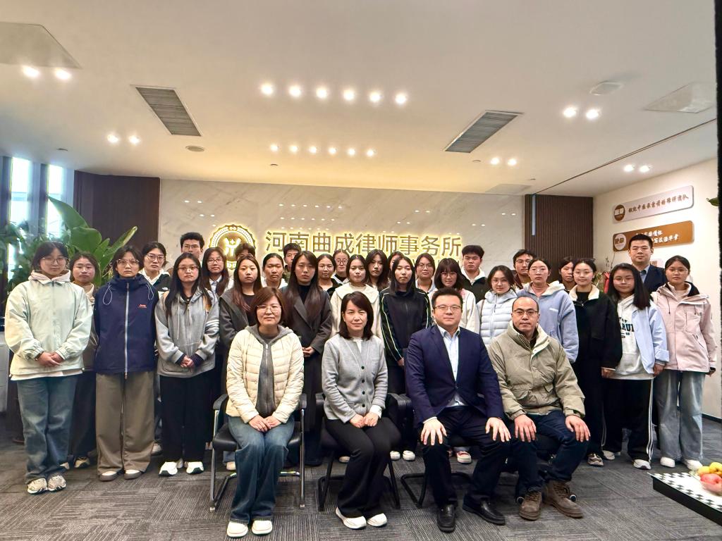 河南曲成律师事务所党支部书记、主任上官绪波以“法治实践的每一步都关乎公平正义”为起点,带领师生沿“办公区——研讨室——荣誉墙”动线深入参观。在律师办公区,新生们看到案卷按程序分类归档、法律文书逐字推敲修改,直观感受“每一份法律文件都承载当事人权益”的职业责任;在会议研讨室,上官主任结合正在办理的民事纠纷案件,讲解“如何通过证据梳理还原事实真相”,让新生理解“程序正义是实体正义的保障”;荣誉展示墙前,律所历年办理的“农民工讨薪维权”“未成年人法律援助”等典型案例,更让新生们深刻认识到:律师作为法治实践的重要力量,始终在“维护弱势群体权益、推动矛盾实质性化解”中坚守公平正义底线。
