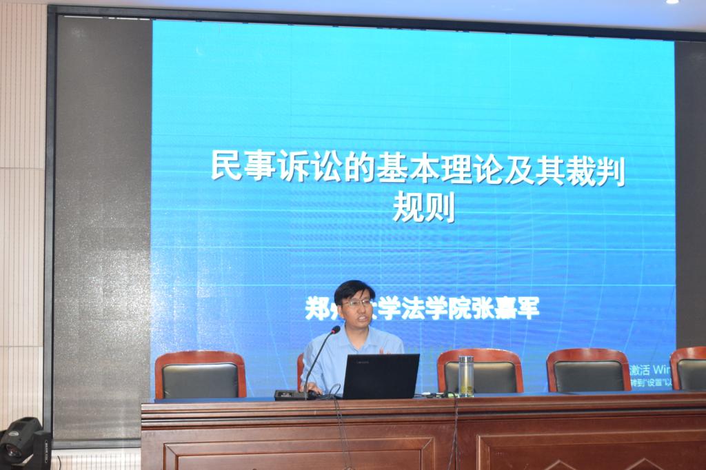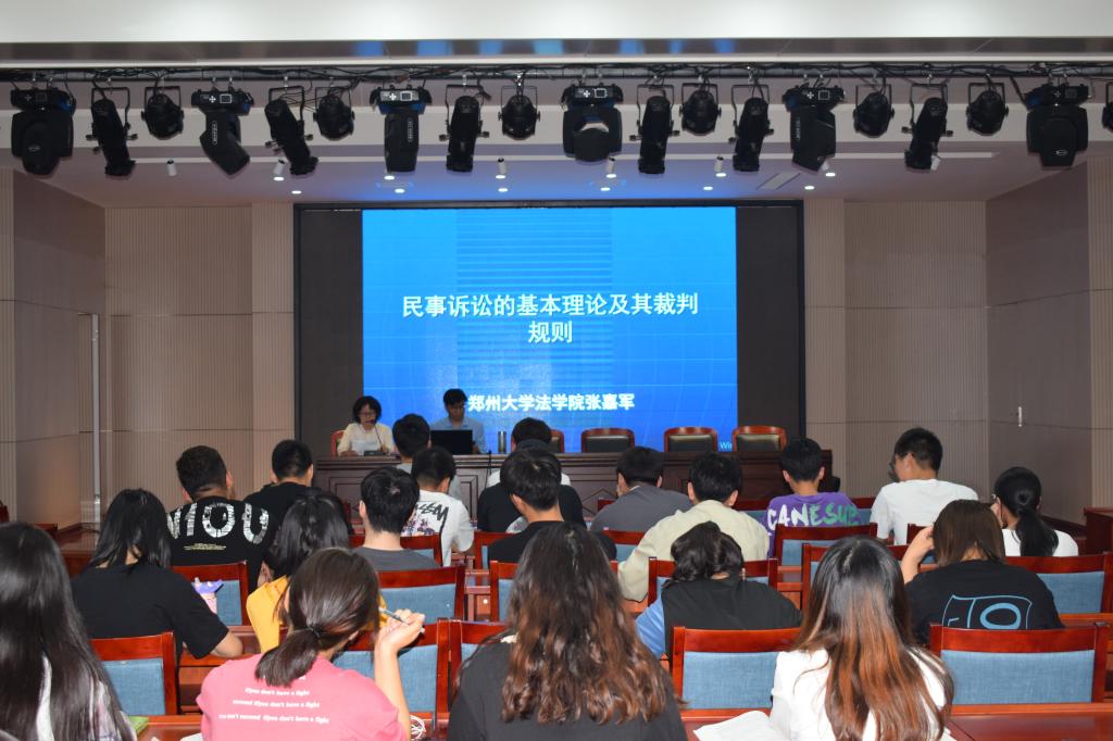 张嘉军教授是中国司法案例研究中心执行主任(河南省高级人民法院与郑州大学联合成立)最高人民检察院检察公益诉讼研究基地--郑州大学检察公益诉讼研究院执行院长同时一直坚持在郑州大学法学院担任民法讲课讲座上张嘉军教授为我们讲解了民事诉讼的基本程序和基本理论并通过日常生活中常见的问题和现场的同学们共同探讨了在实际生活中如何通过民事诉讼解决纠纷例如路边的钱能不能捡捡到后如何处理以及买车买房遇到问题时如何通过民诉程序解决问题等等张教授带着同学们用法律逻辑思维讨论日常生活中遇到的问题以及如何处理好这次的讲座不仅仅是让我们用听的懂得方法学习和拓展民事诉讼的基本理论及裁判规则更是带给我们用法律思维考虑日常生活背后的法理知识的一种思维模式