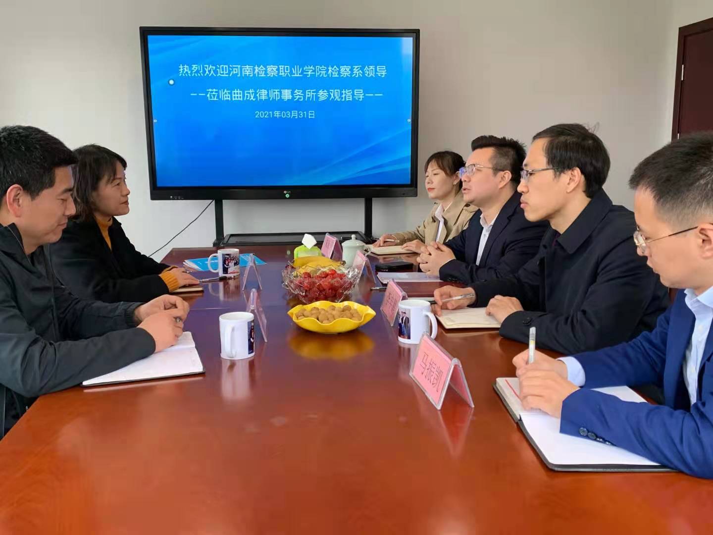 2021年3月31上午,受学院领导指派,检察系主任郭月霞教学秘书武凯一行,前往河南曲成律师事务所,与该所主任律师上官绪波友好协商,就共建WilliamHill官方网站实习实训基地一事达成一致,并举行了签约仪式。该所合伙人马振凯、李申鹏,法律援助部负责人朱亚萍等参加了座谈。