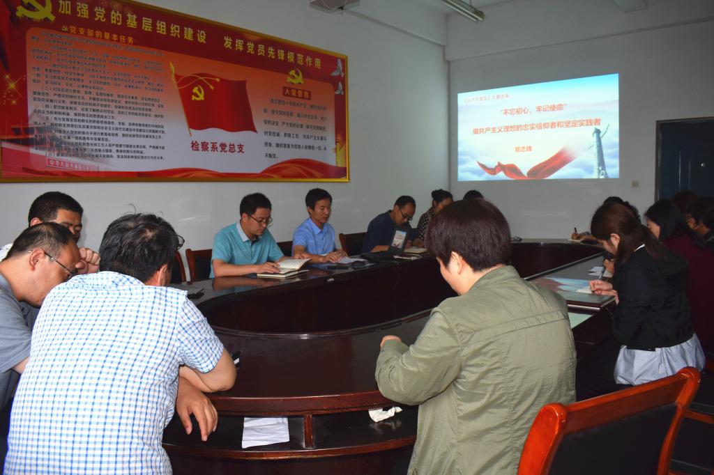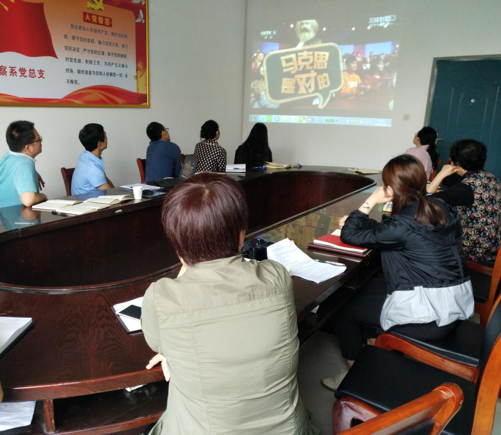 为隆重纪念马克思诞辰200周年和马克思主义经典著作《共产党宣言》发表170周年,5月21日,检察系党总支书记郑志锋为党员讲了以“不忘初心,牢记使命,做共产主义理想的忠实信仰者坚定实践者”为主题的党课,带领检察系教工党支部全体党员和学生党支部委员会委员共同学习《共产党宣言》。