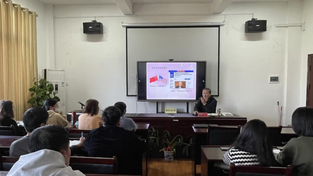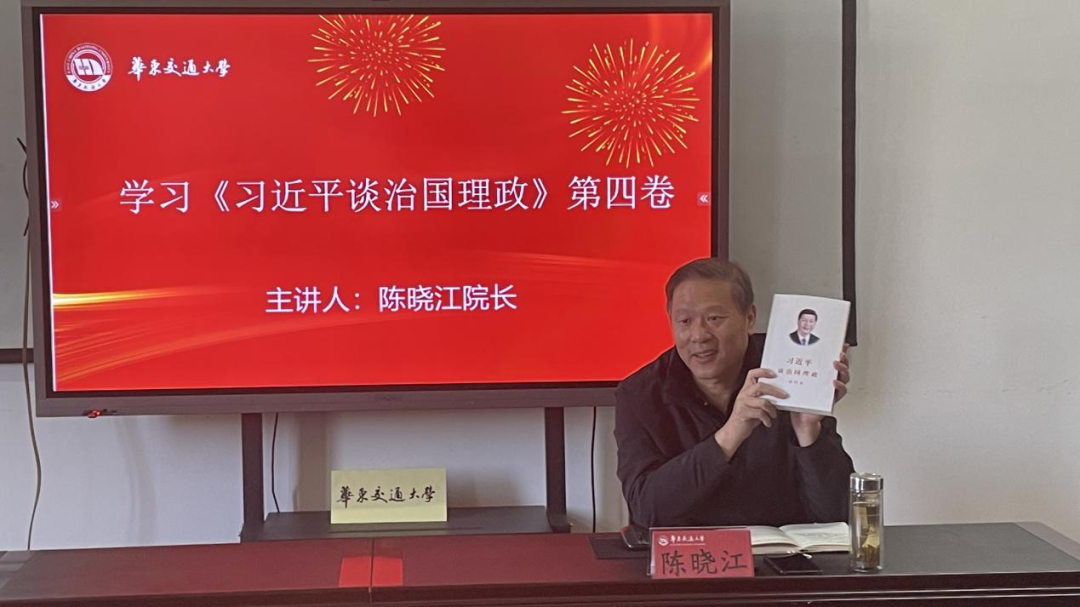 陈晓江以“中国智慧”切入并以中国之路、中国之治、中国之理为索引,深入浅出地讲解了《习近平谈治国理政》第四卷的重点内容。他指出,国之兴衰系于制,民之安乐皆由治。当今世界正经历实现中华民族伟大复兴的战略全局和世界百年未有之大变局的“两个大局”,中国共产党用中国智慧解决了许多长期想解决而没有解决的难题,办成了许多过去想办而没有办成的大事,推动党和国家事业发生历史性变革。他强调,新“两步走"战略把基本实现社会主义现代化的时间提前15年,并提出把我国建成富强民主文明和谐美丽的社会主义现代化强国,完整勾画了我国社会主义现代化建设的时间表、路线图。他引导在座学生要把《习近平谈治国理政》一、二、三、四卷作为有机整体来研究,持续抓好学习教育,加强宣传普及,深化研究阐释,创新国际传播,在学懂弄通做实党的创新理论上不断取得新进展新成效,以实际行动迎接党的二十大胜利召开。