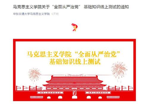 “全面从严治党”基础知识线上测试,既是对全院师生党员学习情况的一次考察,更是一次有意义的教育实践活动。通过“全面从严治党”基础知识线上测试,督促全院师生党员认真学习《中国共产党章程》《中国共产党廉洁自律准则》《中国共产党纪律处分条例》等党规党纪,不断加强党性修养,提升廉洁自律的意识,树立崇高道德追求,守住为人、做事的基准和底线,发挥党员的先锋模范作用,促进学院各项工作更好更快的发展。