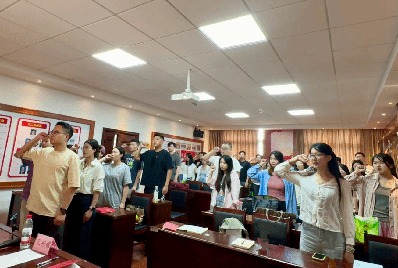 最后,孔柠檬带领全体党员重温入党誓词。面对鲜红的党旗,党员们庄严宣誓,誓言铿锵,彰显了党员们坚定的理想信念和对党的忠诚。