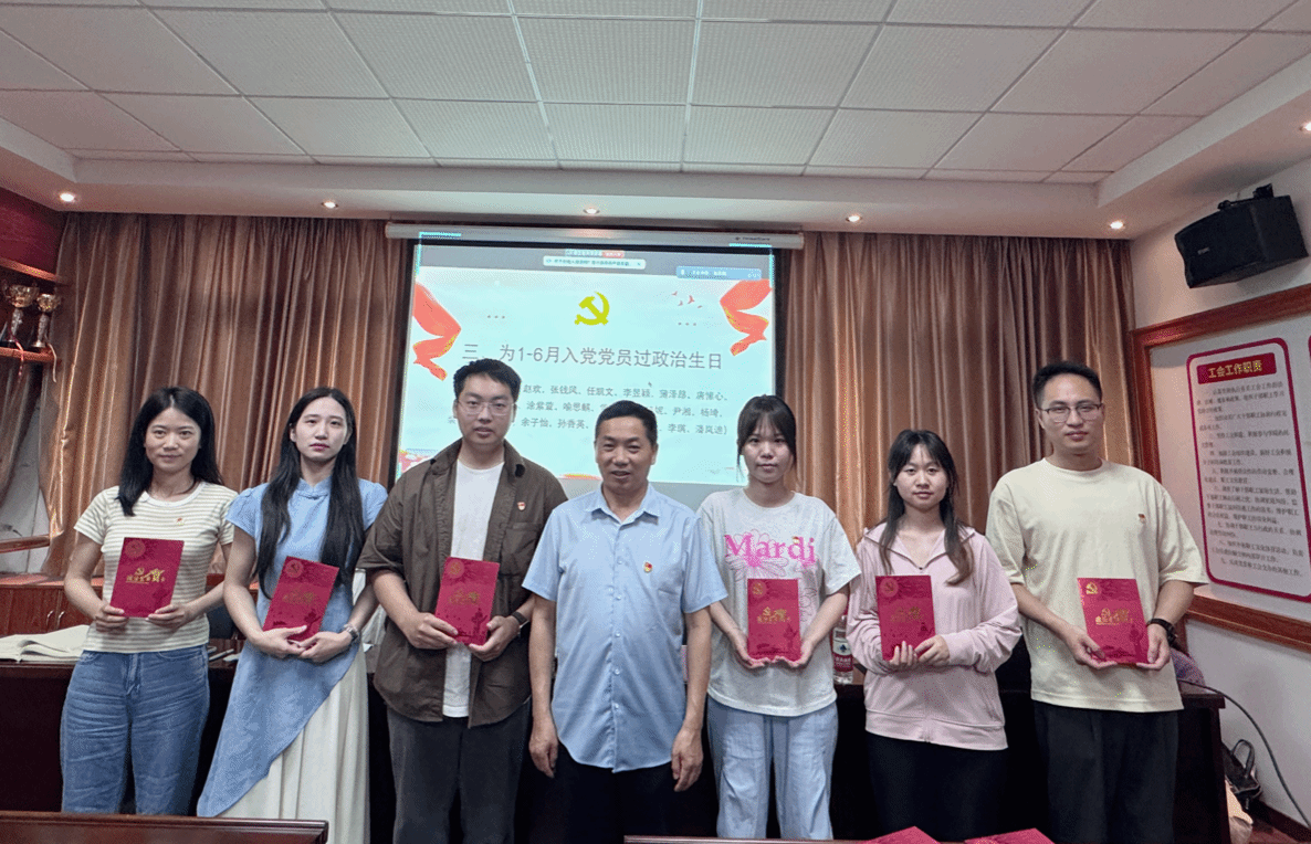 接着,陈和金为黄慧等24位党员颁发政治生日贺卡,并合影留念。孔柠檬开展了毕业生党员离校教育,强调毕业生党员要锤炼党性,永葆政治本色,始终牢记党员身份,在工作中保持担当精神,深耕业务、勇挑重担,让党员徽章在岗位中闪光。对毕业生党组织关系转接要规范流程,做好组织关系线上、线下转接。