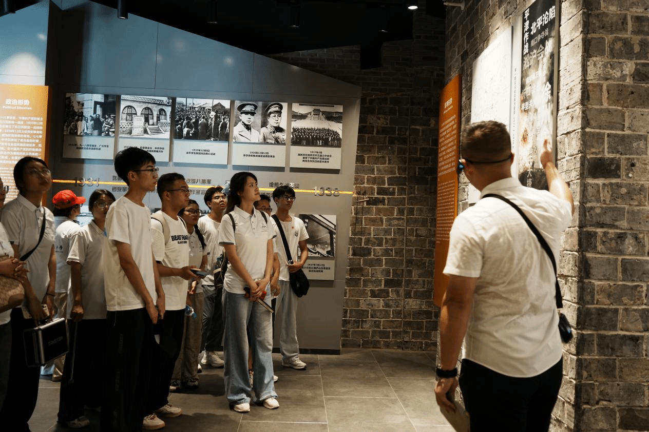 当日上午,实践队踏入庄严肃穆的万家岭大捷纪念园。在讲解员饱含深情的讲述中,墙壁上挂着的一幅幅图片、展柜里摆着的一件件实物,化为惊心动魄的历史长卷。队员们屏息凝神,跟随讲解回溯1938年万家岭战场上中国军民用血肉之躯构筑钢铁防线的悲壮史诗。社会实践队队员王雯蕾凝视着战役复原沙盘动容道:“历史书上的文字在这里变得滚烫立体,我真实‘触摸’到了民族危亡时刻,先烈们舍生忘死迸发出的磅礴伟力。”