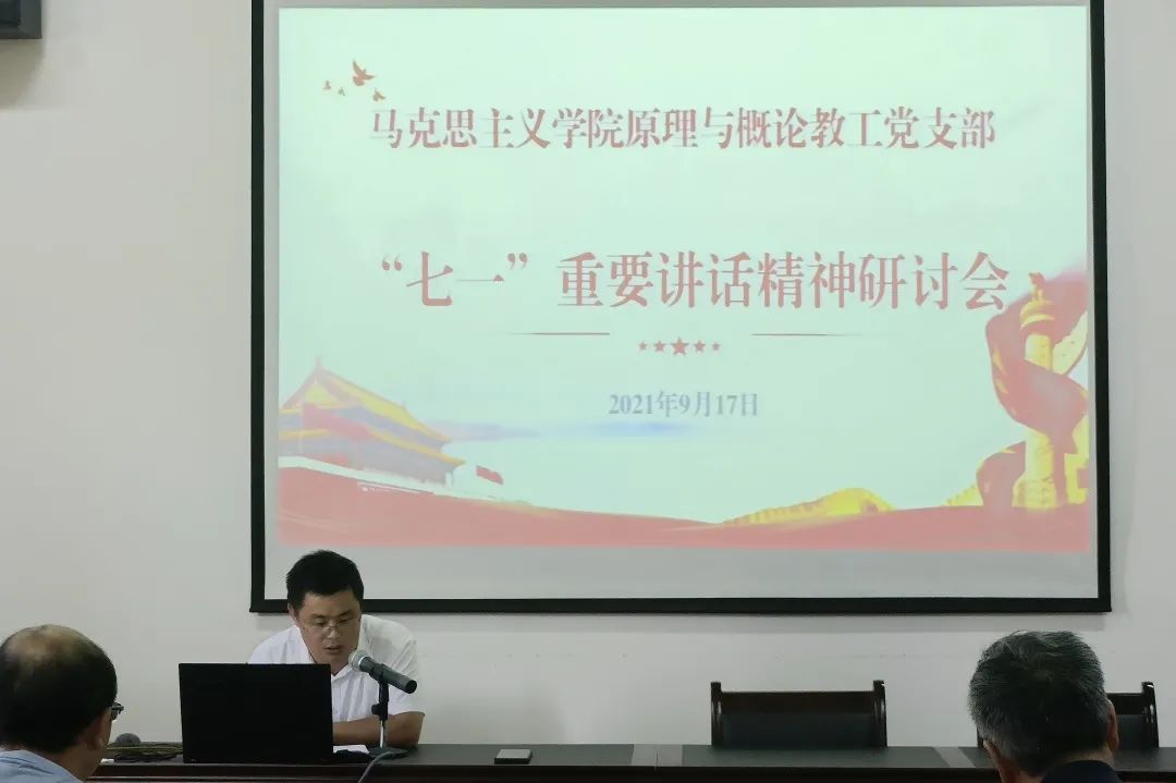 9月17日下午,原理与概论教工党支部围绕如何进一步学习领会,贯彻落实习近平总书记“七一”重要讲话精神,如何更好地坚持“学史明理、学史增信、学史崇德、学史力行”党史学习教育要求,结合思想政治教育的具体实践开展了“七一”重要讲话精神党支部研讨会,研讨会由支部书记刘晓伟主持。