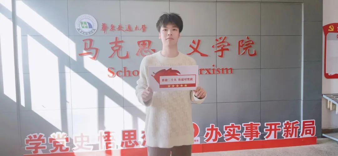 栉风沐雨,党代会历久而新;筚路蓝缕,党的二十大扬帆再起航。党的二十大是在全党全国各族人民迈上全面建设社会主义现代化国家新征程,向第二个百年奋斗目标进军的关键时刻召开的一次十分重要的大会,作为新时代的青年学子,我们要始终跟随党的脚步、向党看齐,积极将自己的涓滴之力融入到实现中华民族伟大复兴的磅礴伟力中,以实际行动迎接党的二十大胜利召开!