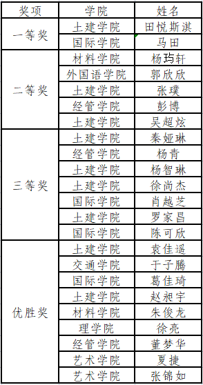 经过评比,最终评选出一等奖2名,二等奖5名,三等奖7名。另外,在所有参与此次比赛的演讲作品中,评选出优胜奖9名。
