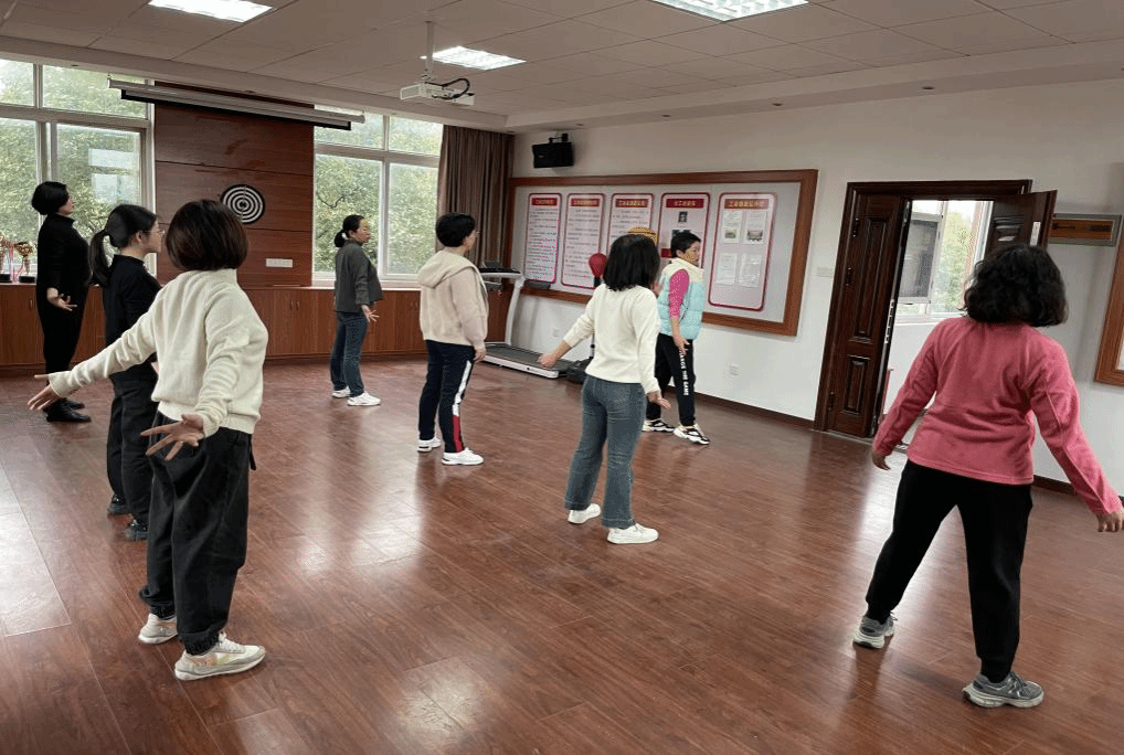 3月21日下午,为促进女教职工身心健康,学院工会、女性研究中心联合邀请体育学院严红玲老师在学院工会活动中心开展八段锦教学活动。