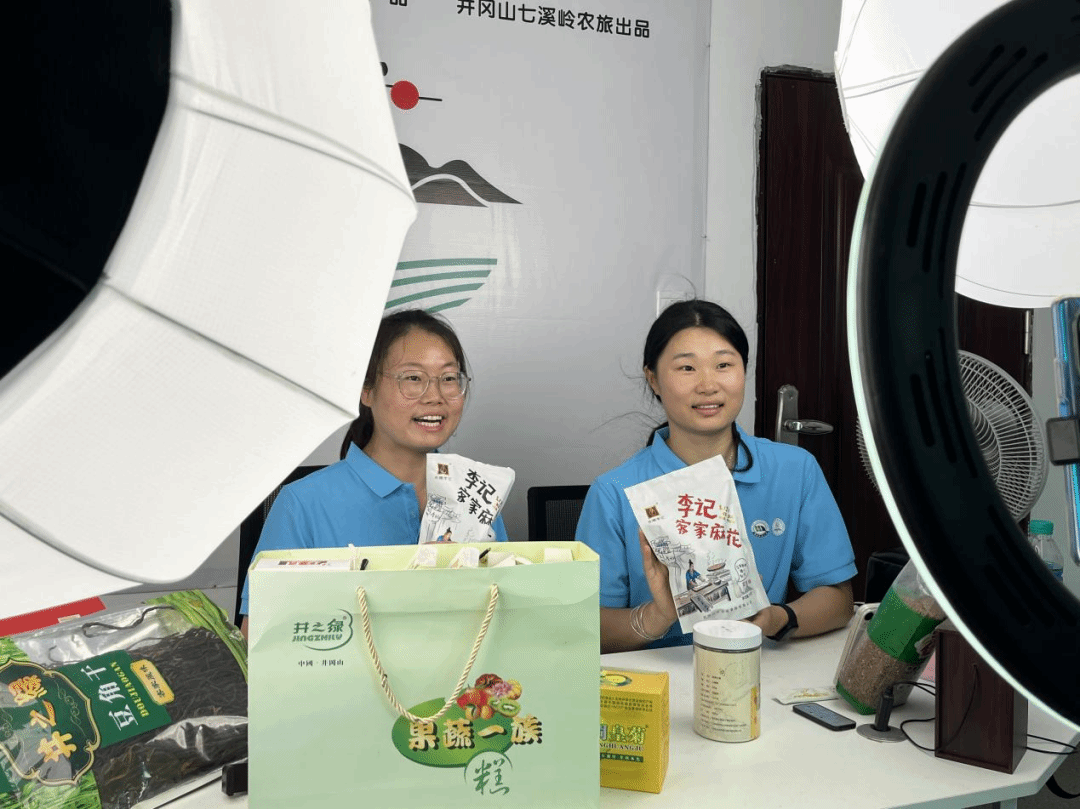 接着,研究生们来到新城镇党群服务中心,在工作人员的带领下来到了助农直播间。