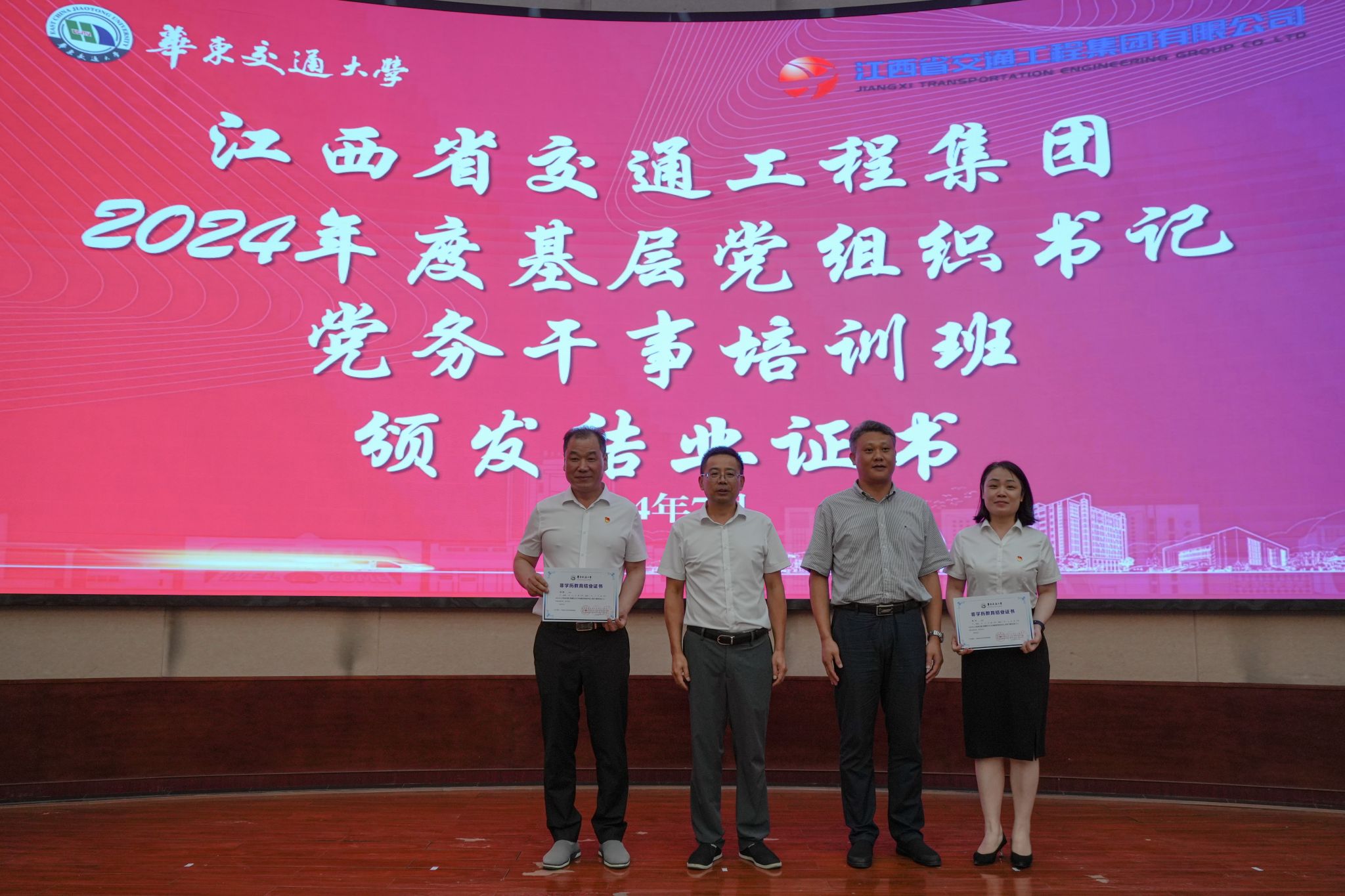7月31日,由学院承办的江西省交通工程集团2024年度基层党组织书记、党务干事培训班结业仪式在必赢官网北区图书馆圆形报告厅举行。江西省交通工程集团党委副书记章利明、437必赢会员中心院长张剑锋出席结业仪式,结业仪式由副院长刘晓伟主持。