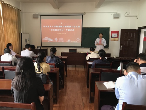 5月7号下午,437必赢会员中心基础与纲要教工党支部组织开展党员固定活动日活动,以庄重的形式,为一到五月份入党的丁佐湘、李晓红、姚卿善、黄颖、袁连红、吴琦、王晓旭、张文俭、刘羽、汪凡家、黄梦婷11位党员过政治生日,共同庆祝这个庄严而神圣的日子,缅怀共产党员的初心和使命,永葆党员本色。活动由支部书记姚卿善主持。