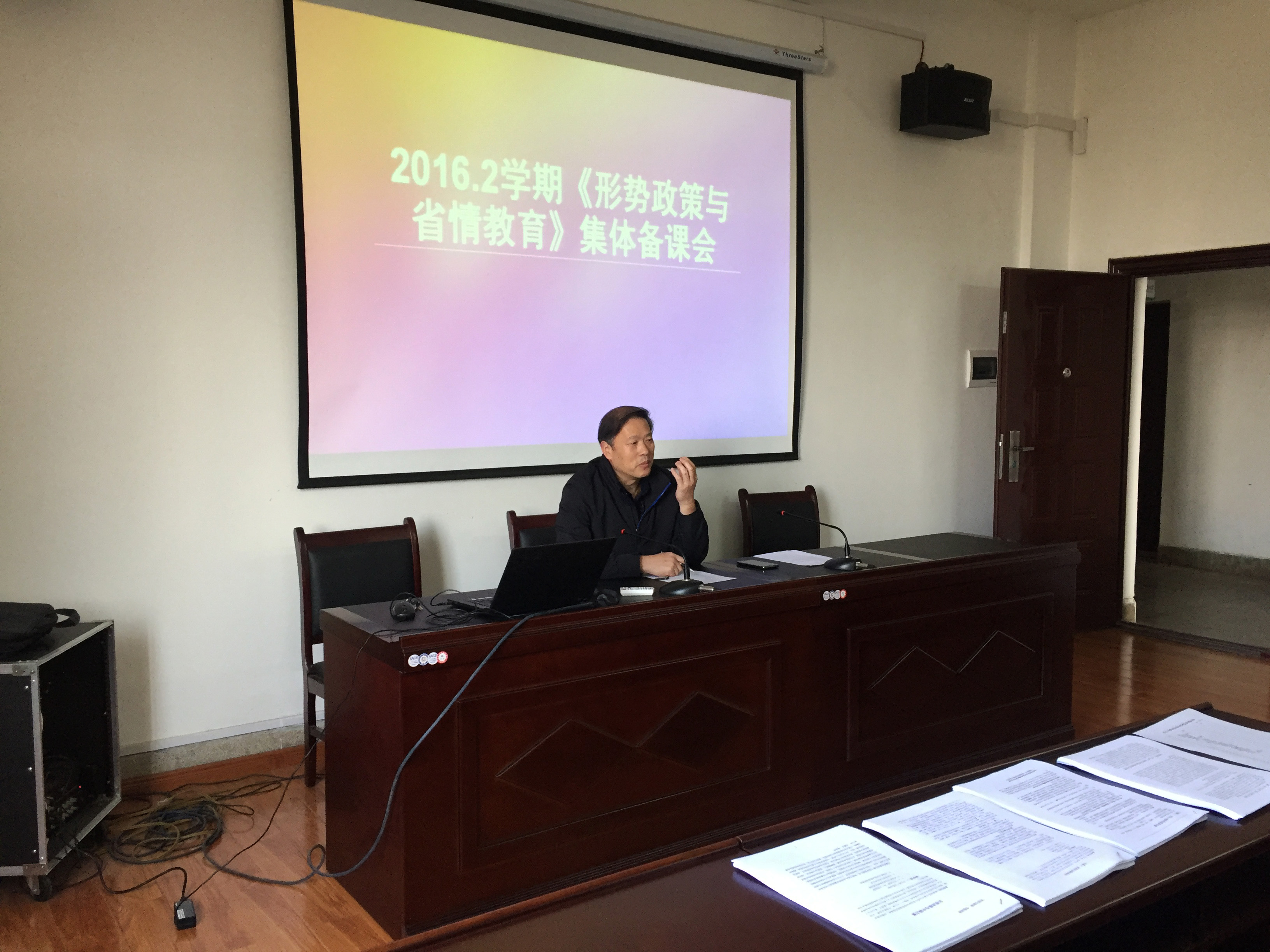 3月2日必赢官网召开了2016-2017学年第二学期“形势政策与省情教育”备课会,会议由陈晓江副院长主持,对本学期的课程进行部署。必赢官网王银乐书记和“势政策与省情教育”任课老师参加了本次会议。
