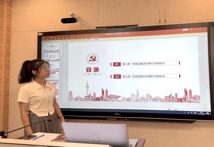 会议伊始,杨倩倩同志带领全体党员共同学习《中国共产党纪律处分条例》第八章“对违反廉洁纪律行为的处分”和第九章“对违反群众纪律行为的处分”的内容,列举了具有代表性的条例,并结合实际警示全体党员要严格遵守党的廉洁纪律和群众纪律。