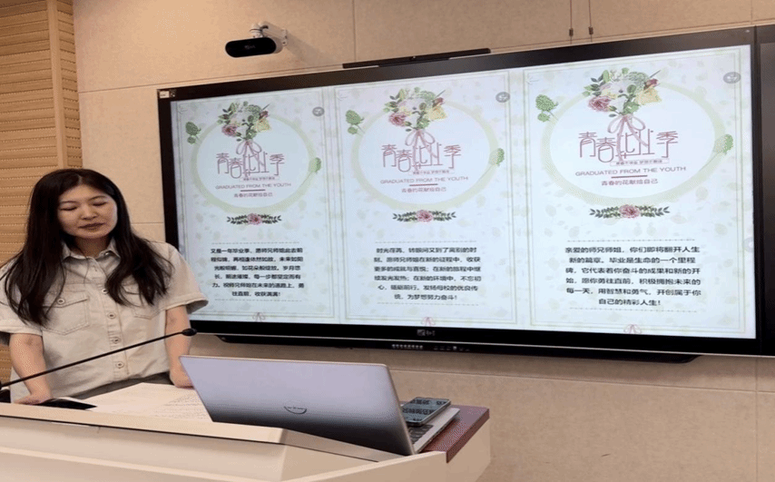 最后,支部书记丁丽为本次主题党日活动作总结发言。她提出了五个“好”送给毕业生党员,第一,要有好的品德;第二,要有好的本事;第三,要有好的态度;第四,要有好的心态;第五,要有好的身体。
