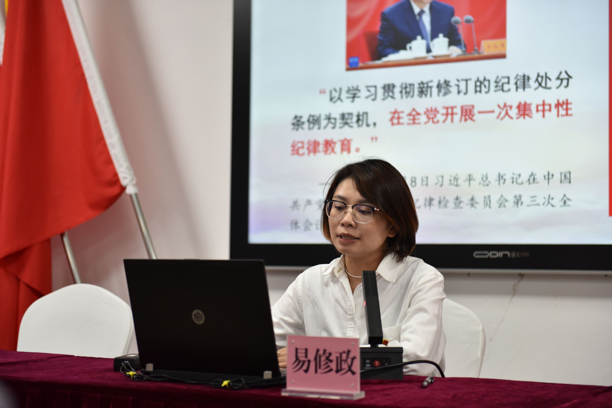 在主题党日授课中,437必赢会员中心易修政围绕《中国共产党纪律处分条例》修订中的政治纪律进行专题导学。易修政从政治纪律是最重要、最根本、最重要的纪律;政治纪律相关修订内容;加强政治纪律学习重要性三个维度展开授课。告诫大家要真学、真用党纪,既让铁纪‘长牙’、发威,又让干部重视、警醒、知止。通过党纪学习教育,要清楚党的纪律规矩是什么,弄明白能干什么,不能干什么”。