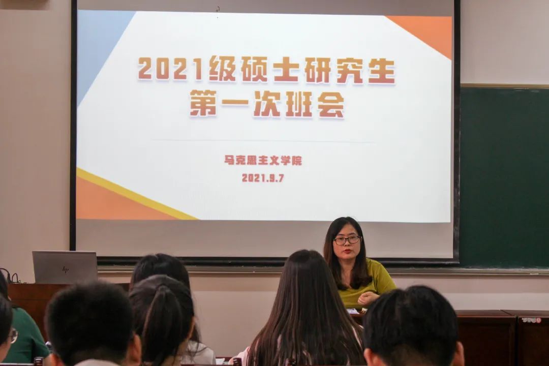 为加强师生沟通,帮助新生熟悉新的学习生活环境,尽快融入新的集体,增强班级凝聚力和向心力,9月7日下午,在学院302会议室召开了2021级硕士研究生入学第一次班会。本次班会由研究生秘书兼辅导员徐飞主持,2021级全体硕士研究生参加。